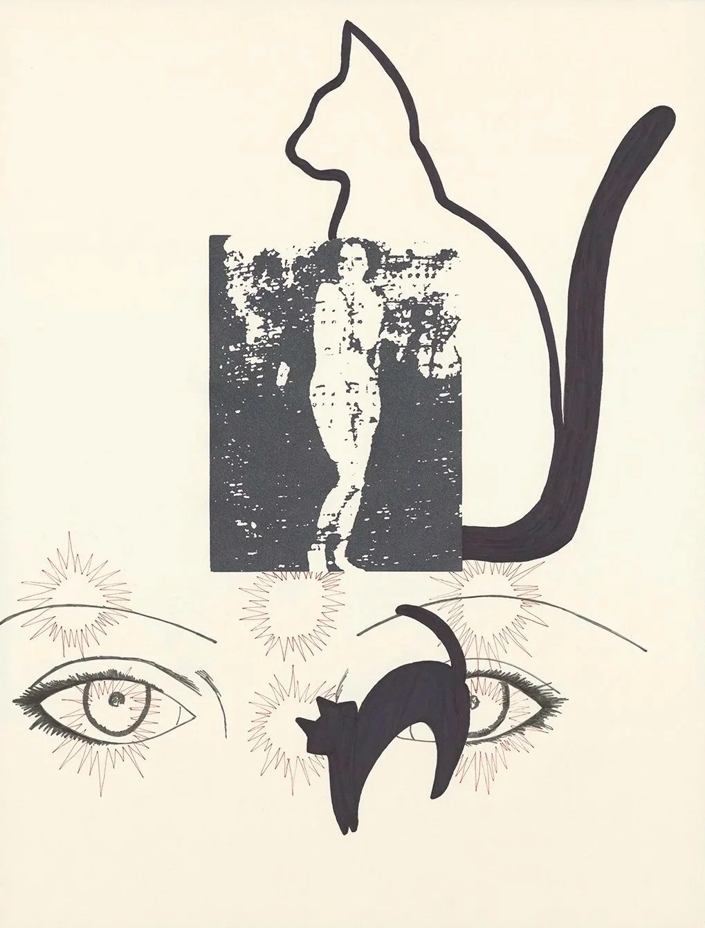 Screenprint, collage, and marker on paper