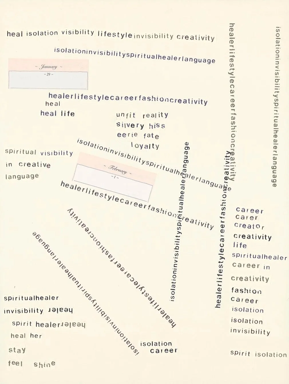 Screenprint, collage, and index cards on Stonehenge paper